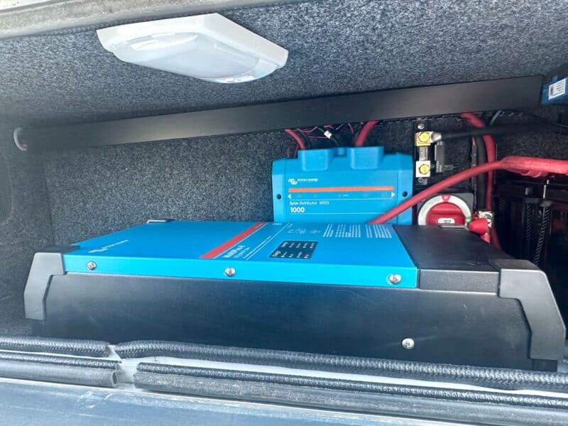 – 3,000 watt Victron Multiplus II (2 x 120) inverter that will run an air conditioner easily