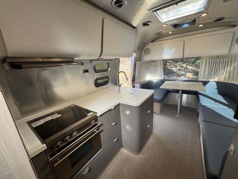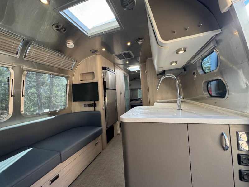 2023 Airstream Globetrotter Queen Bed | Natural Elm & Barcelona Blue Interior