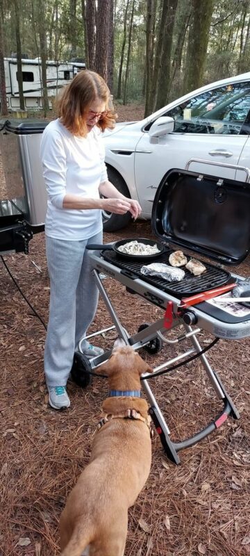 Weber Traveler Low Pressure BBQ grille plugs into Camper