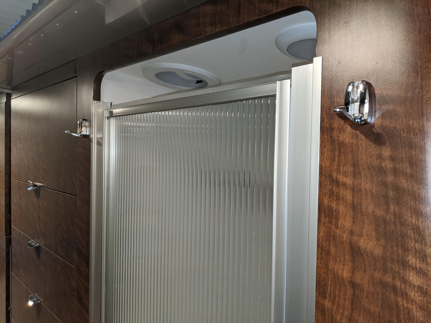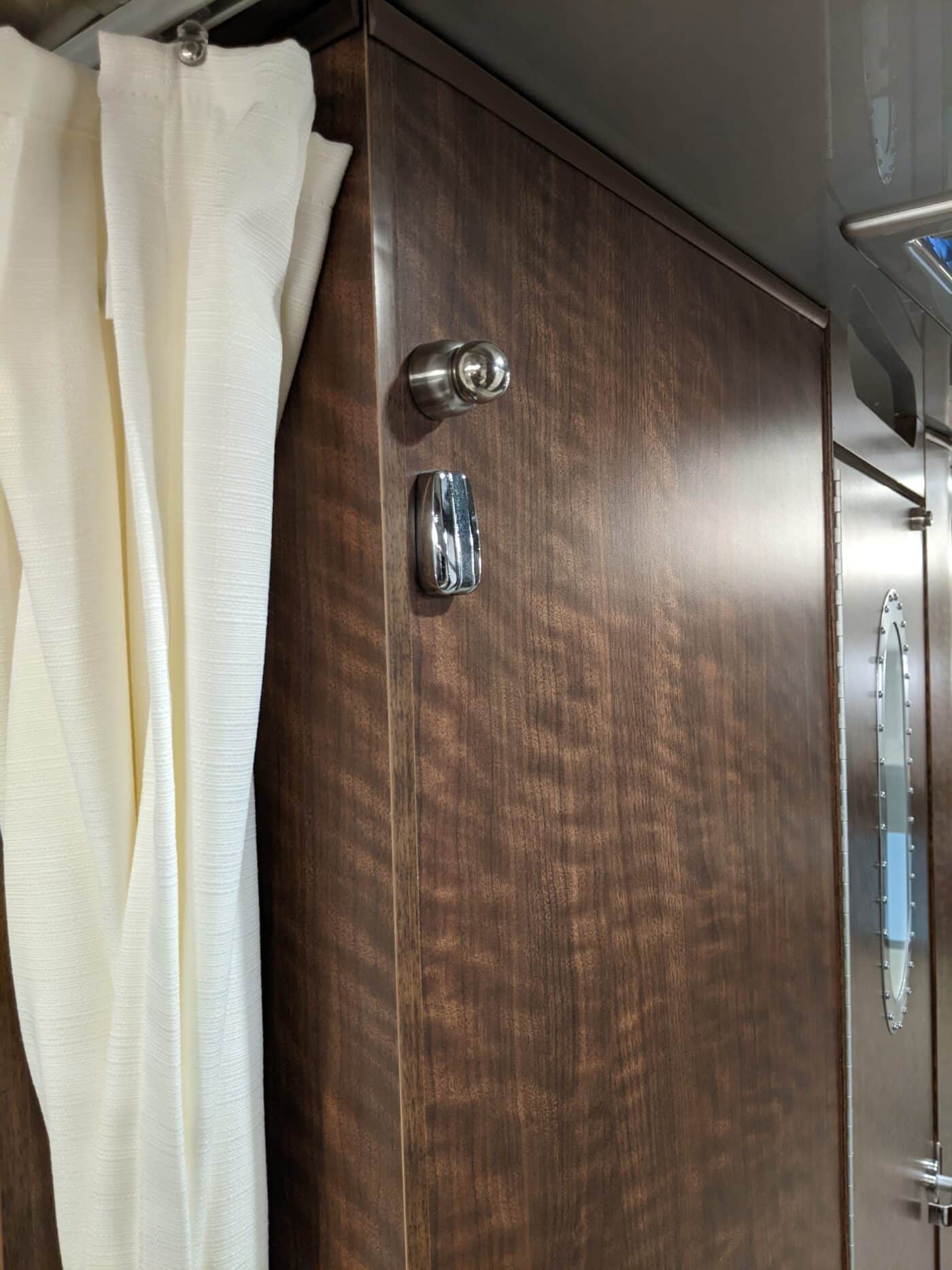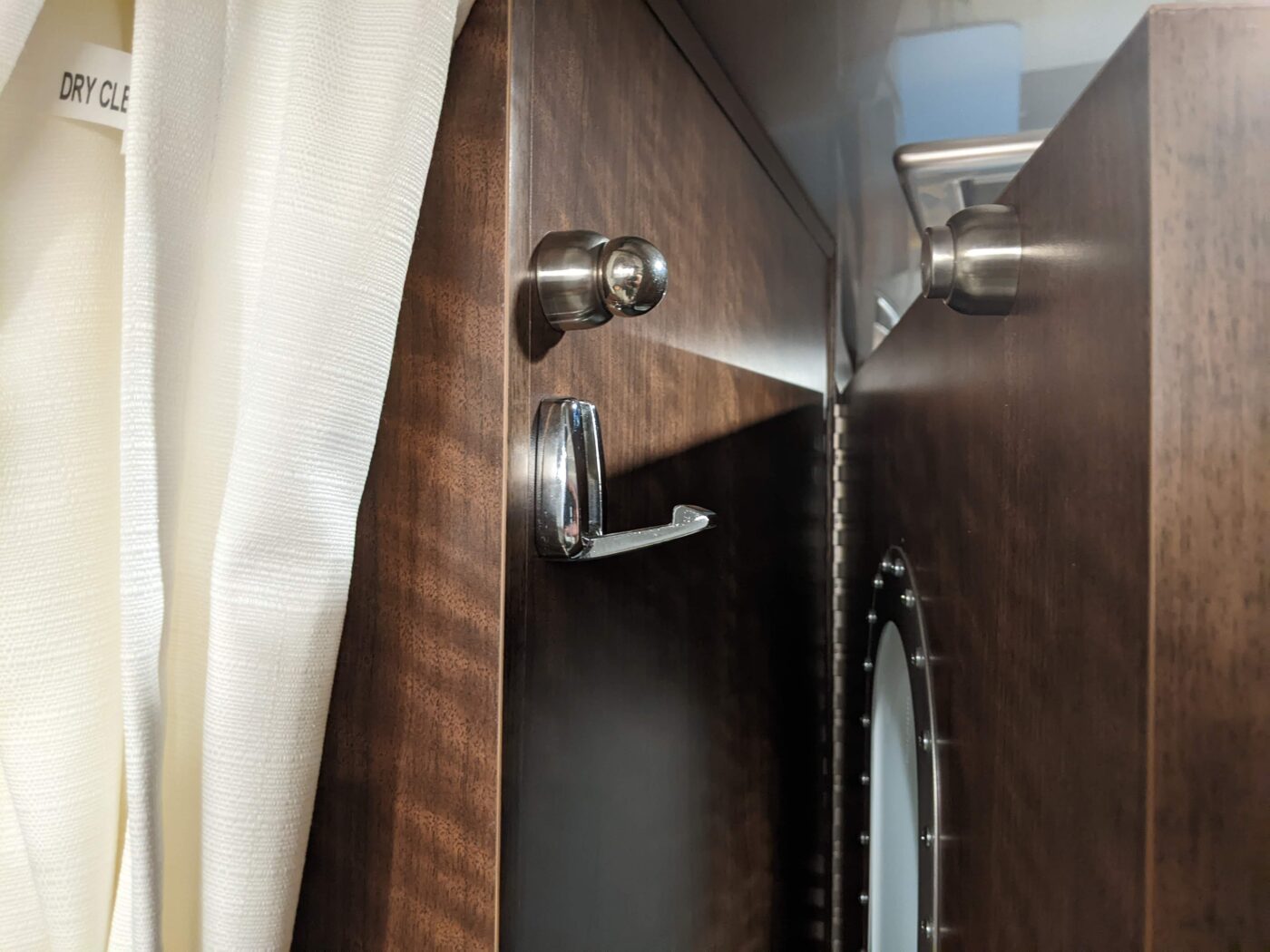 24. All of the new cabinet drawers have chrome push-button locks installed ensuring they stay closed while traveling.