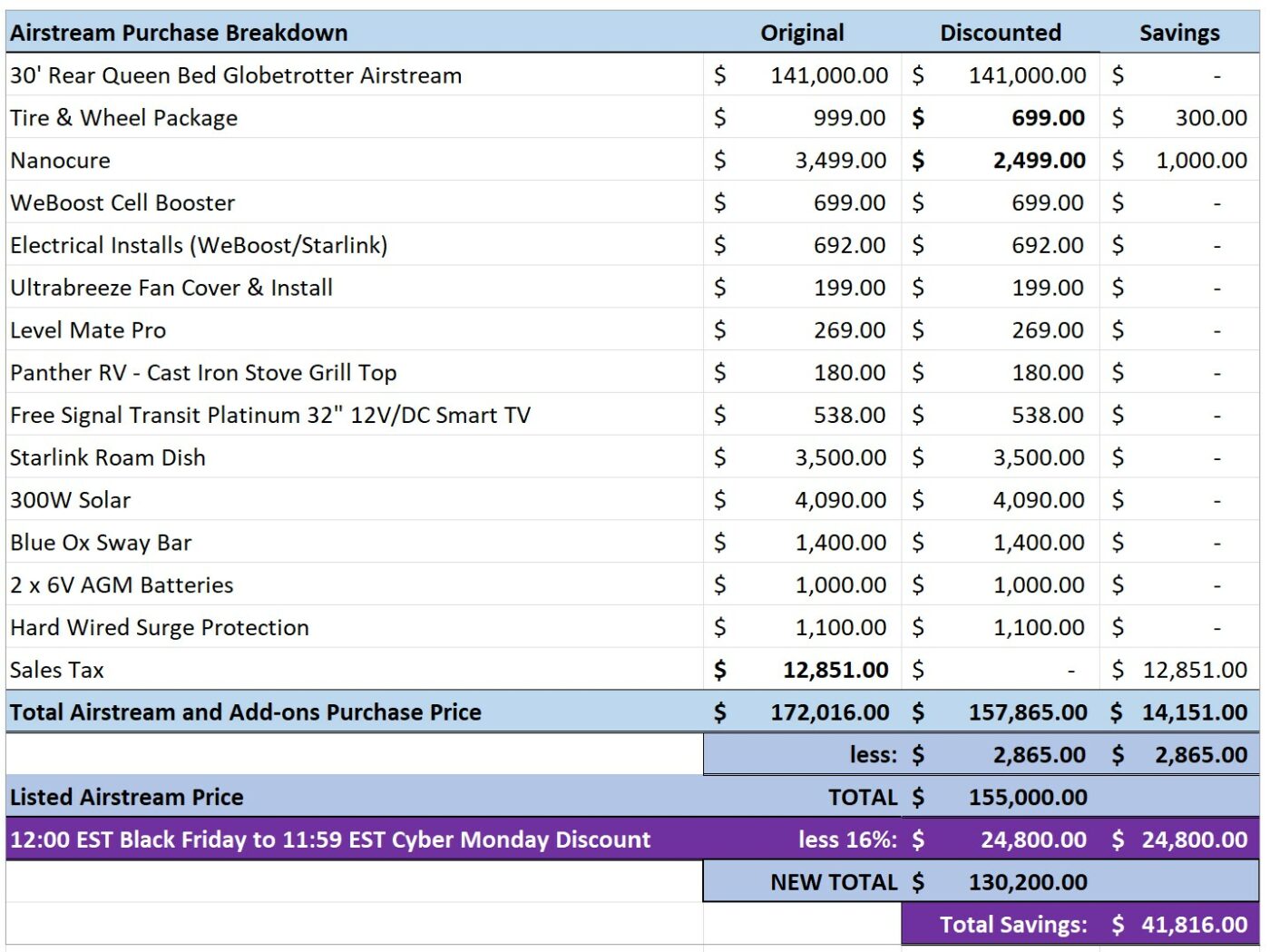 ** Starlink, Blue Ox Sway Bar and Smart TV can be removed if not required.