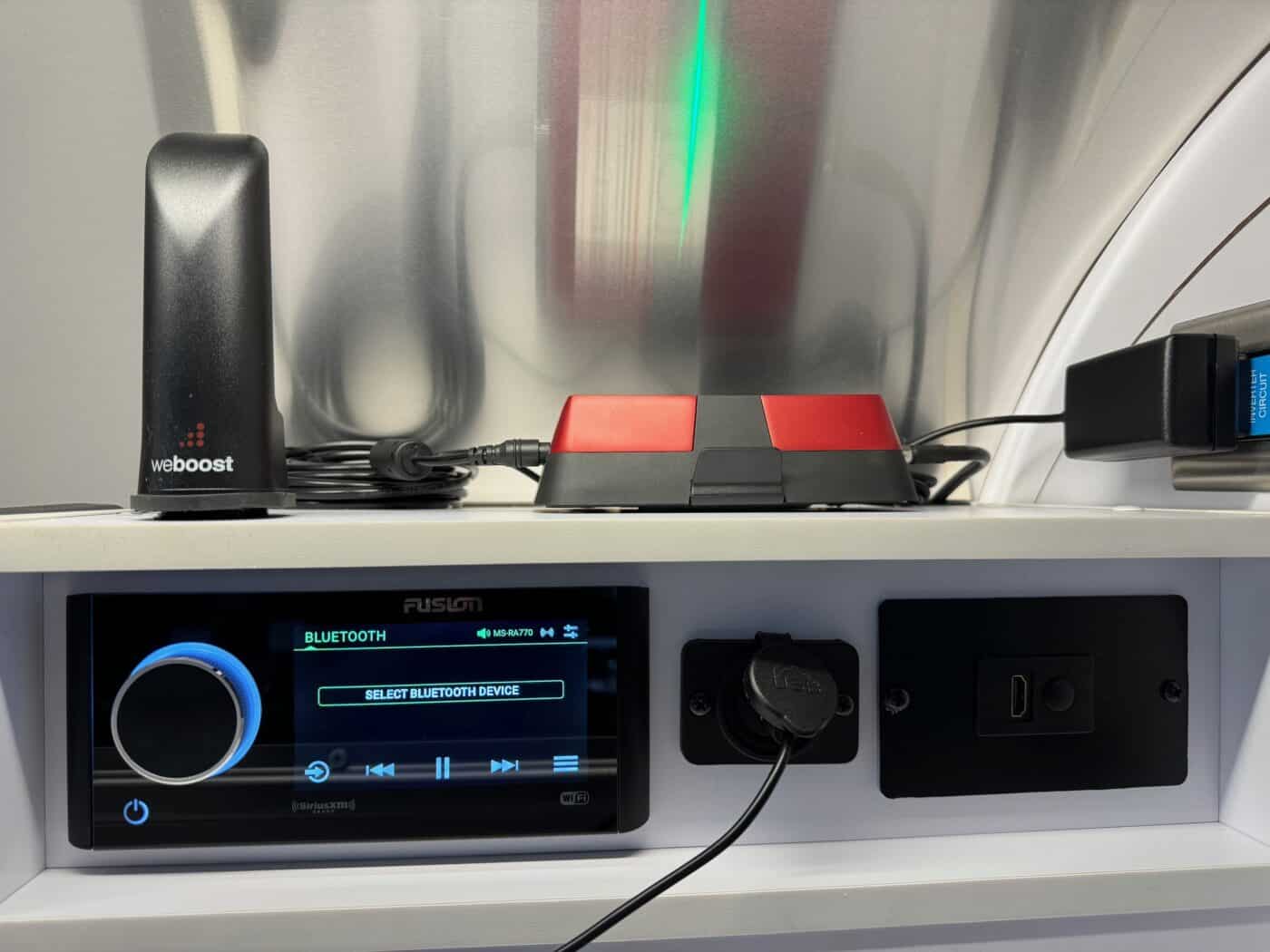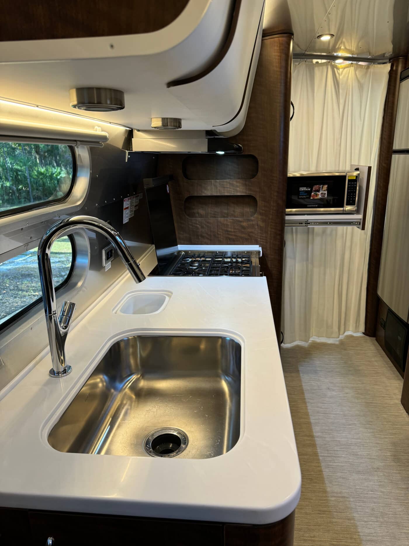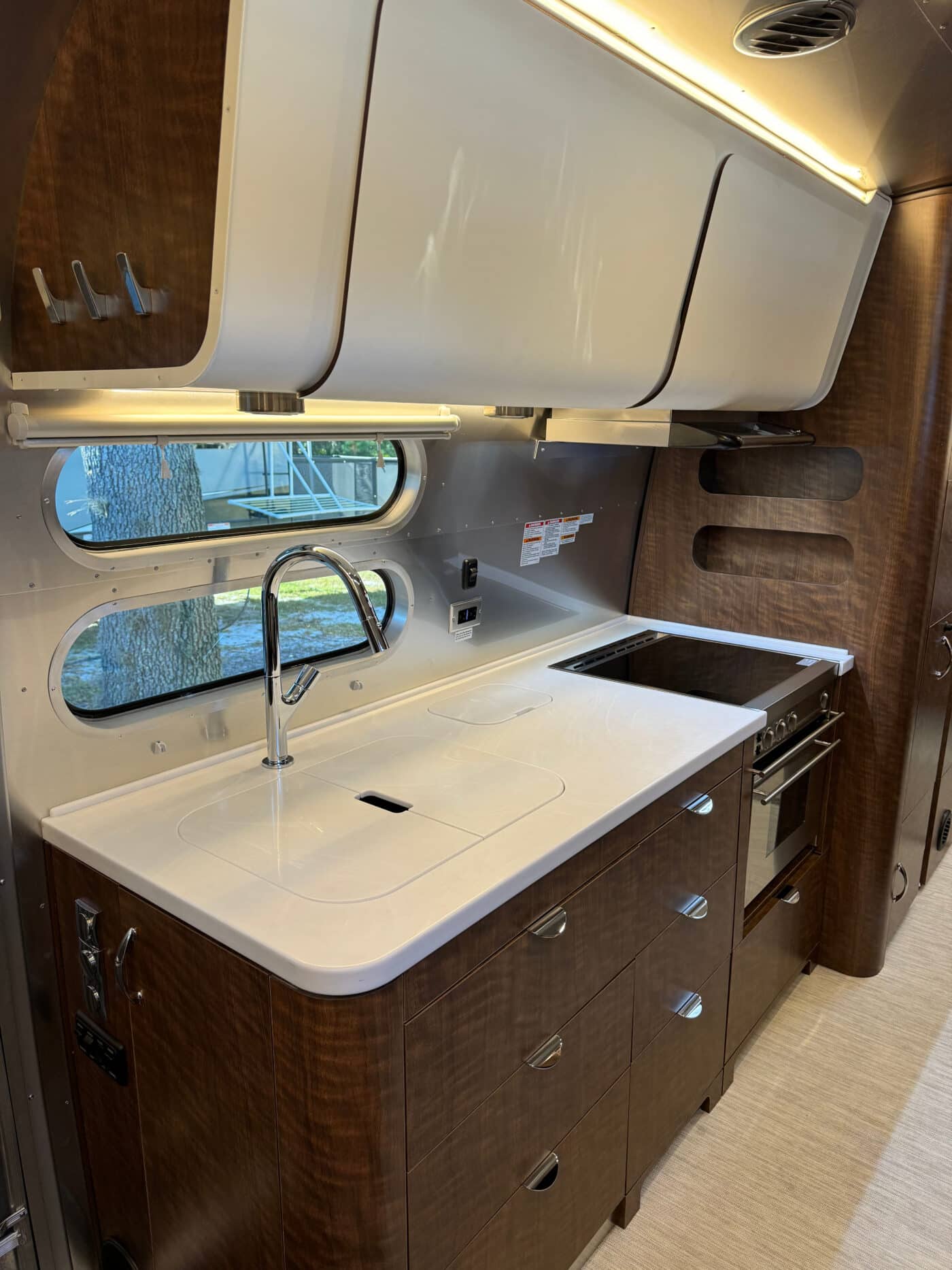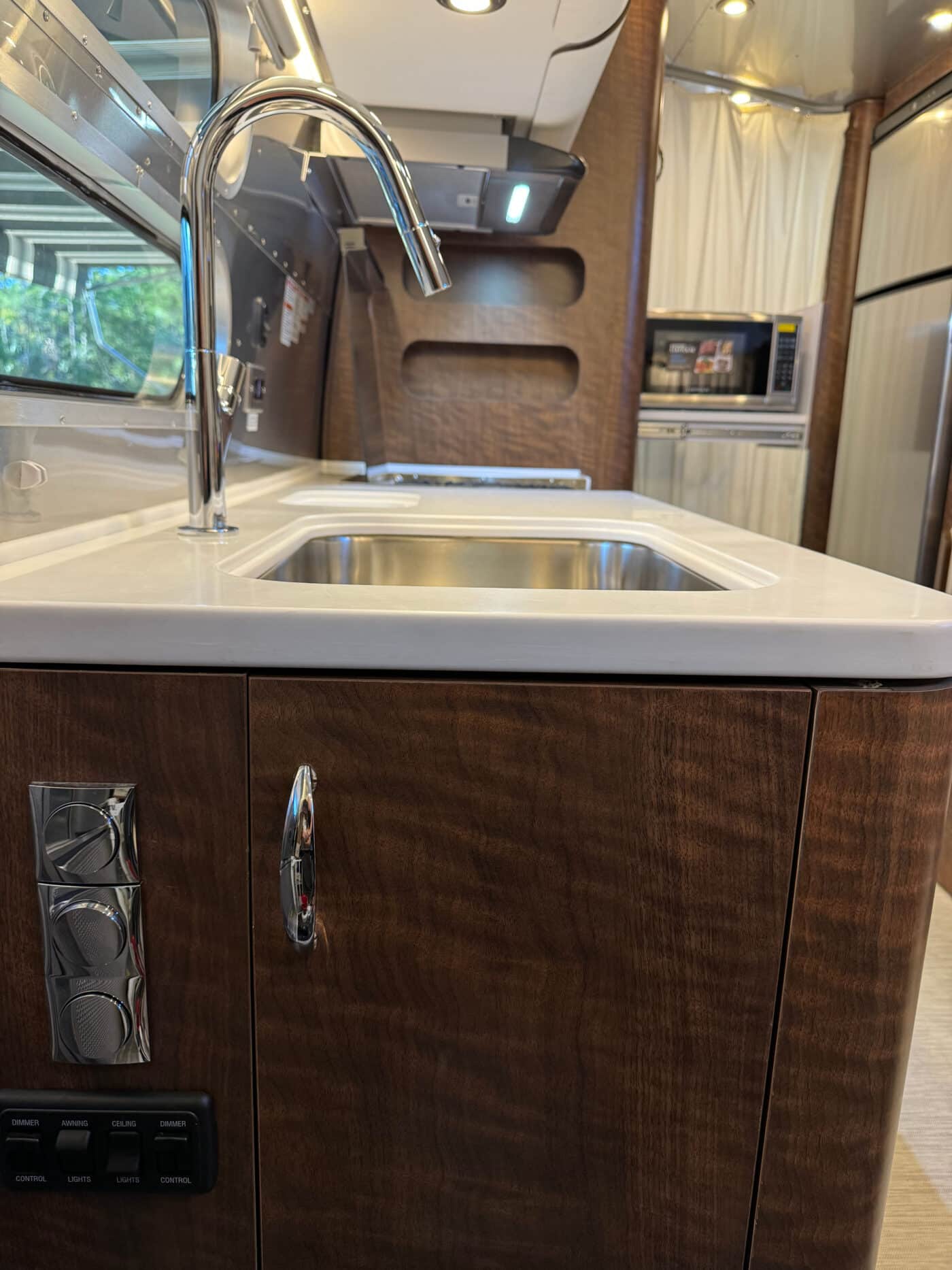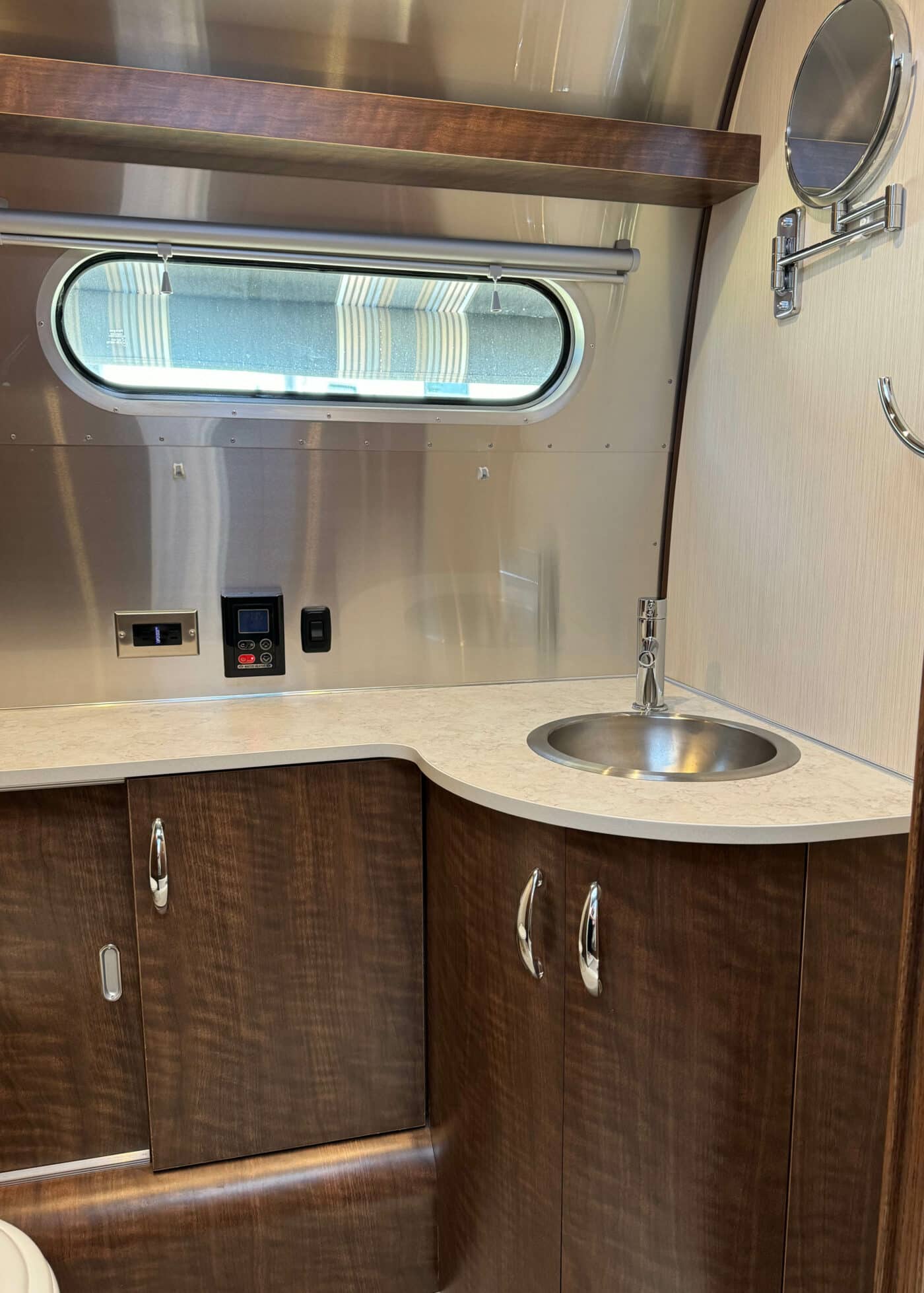We will also be including water and sewer hoses, hose bags, 1 x 50V-30V and 1 x 30V-110V converter plugs, black and gray tank treatments, a Y-adapter so that you can keep your fresh and tank flush hoses hooked-up, as well as indoor/outdoor Airstream floor mats and an exterior pad mat for your trailer-side hangout space.