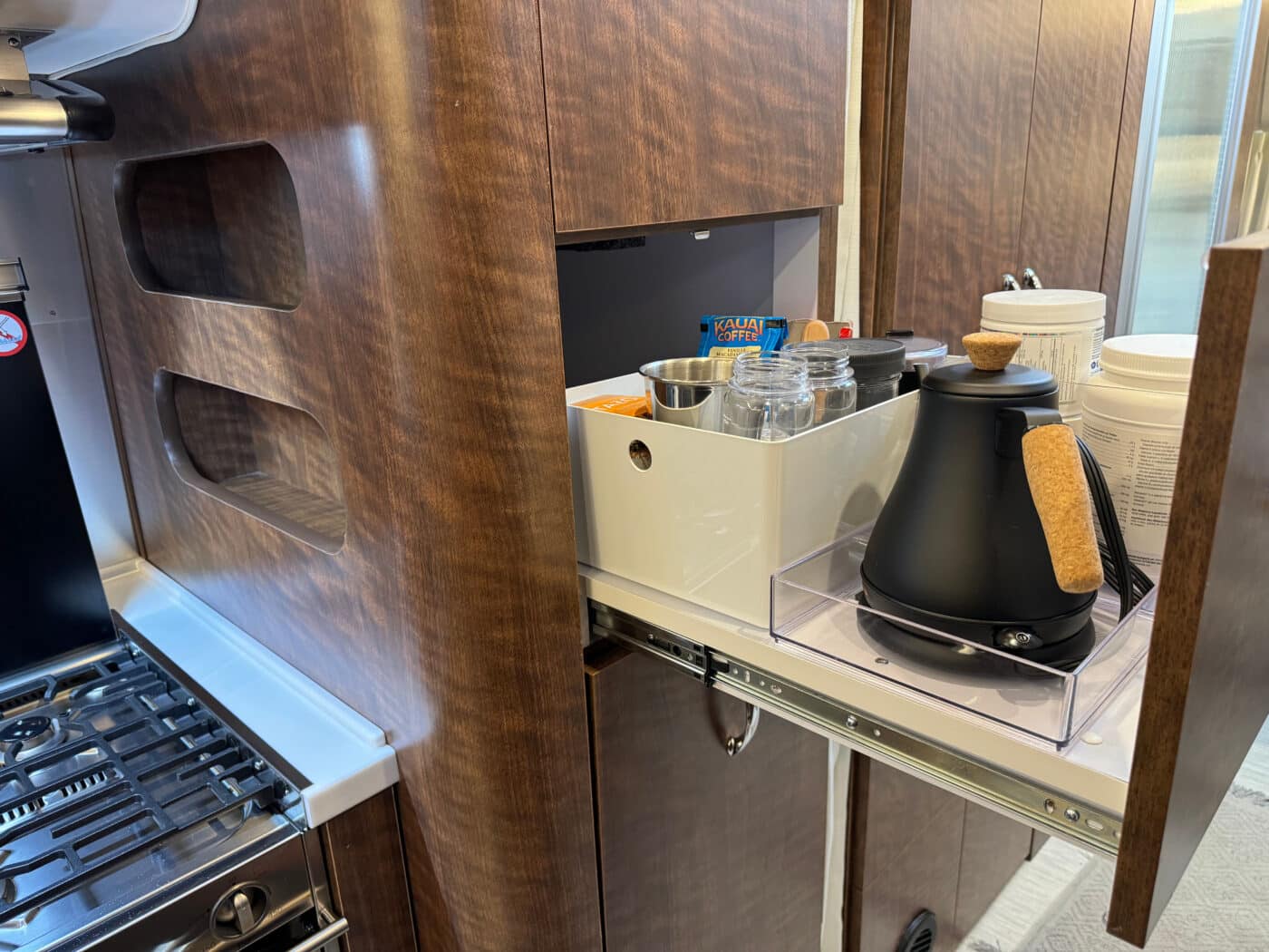 – Upgraded the stove top to a cast iron top for more usable cooking surfaces