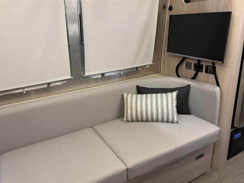 • The Globetrotter is the only Airstream travel trailer to feature award-winning HITCH fabric for its seating upholstery. HITCH features a fine woven texture, subtle metallic tip print, and a distinctive two-tone feel. It’s also incredibly durable and stain-resistant.
